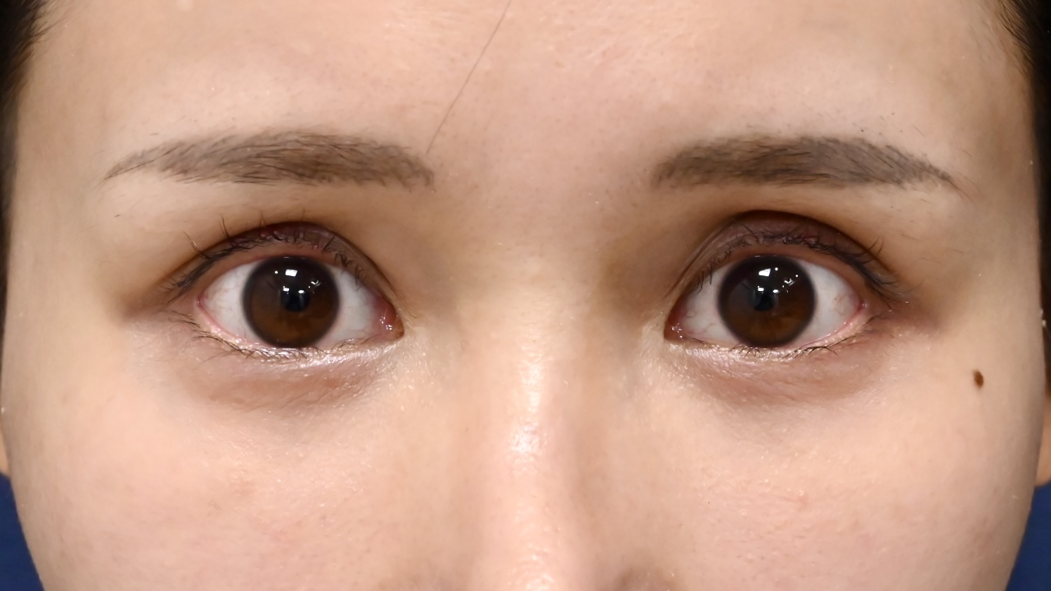施術説明 | まぶたの裏側(結膜側)を切開し、靭帯剥離や眼窩脂肪移動などの組織処理を行い、立体感を整える。 他院にて行われた注入治療(PRP+FGF)によって生じたしこりを除去する。 |